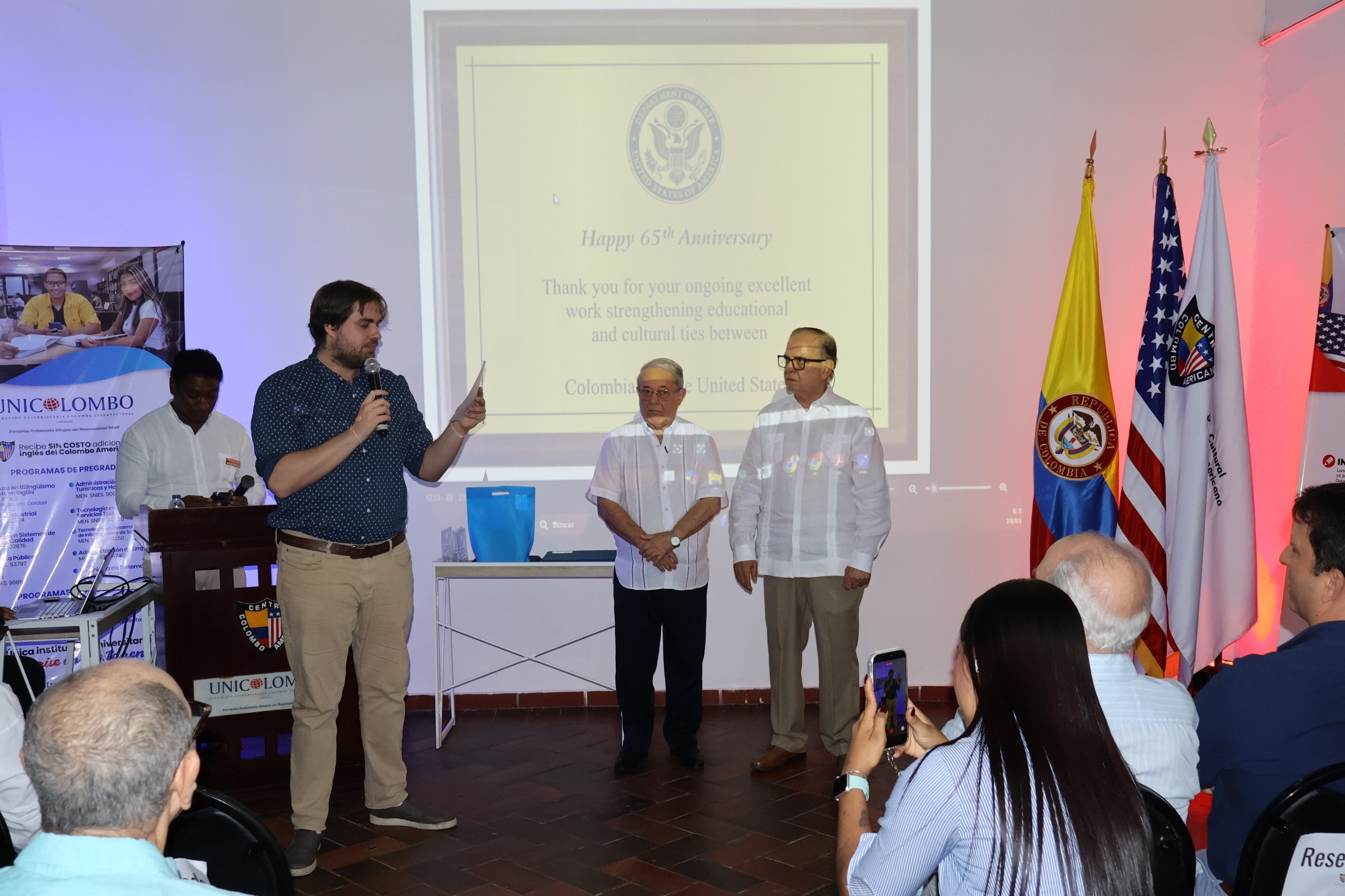 En su rol como centro binacional, la estrecha relación con la Embajada de los Estados Unidos ha fortalecido el intercambio educativo y cultural, promoviendo el aprendizaje del idioma inglés como una herramienta de conexión entre culturas. Este compromiso se refleja en iniciativas académicas y culturales de alto impacto, como el American Colombo Song Festival, así como en celebraciones y experiencias comunitarias que fortalecen el sentido de pertenencia y los valores compartidos.